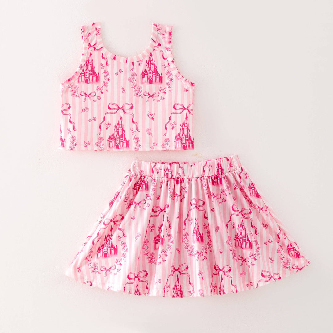 Cotton Easy Tee & Dolphin Short Set: Charcoal Pink Icons