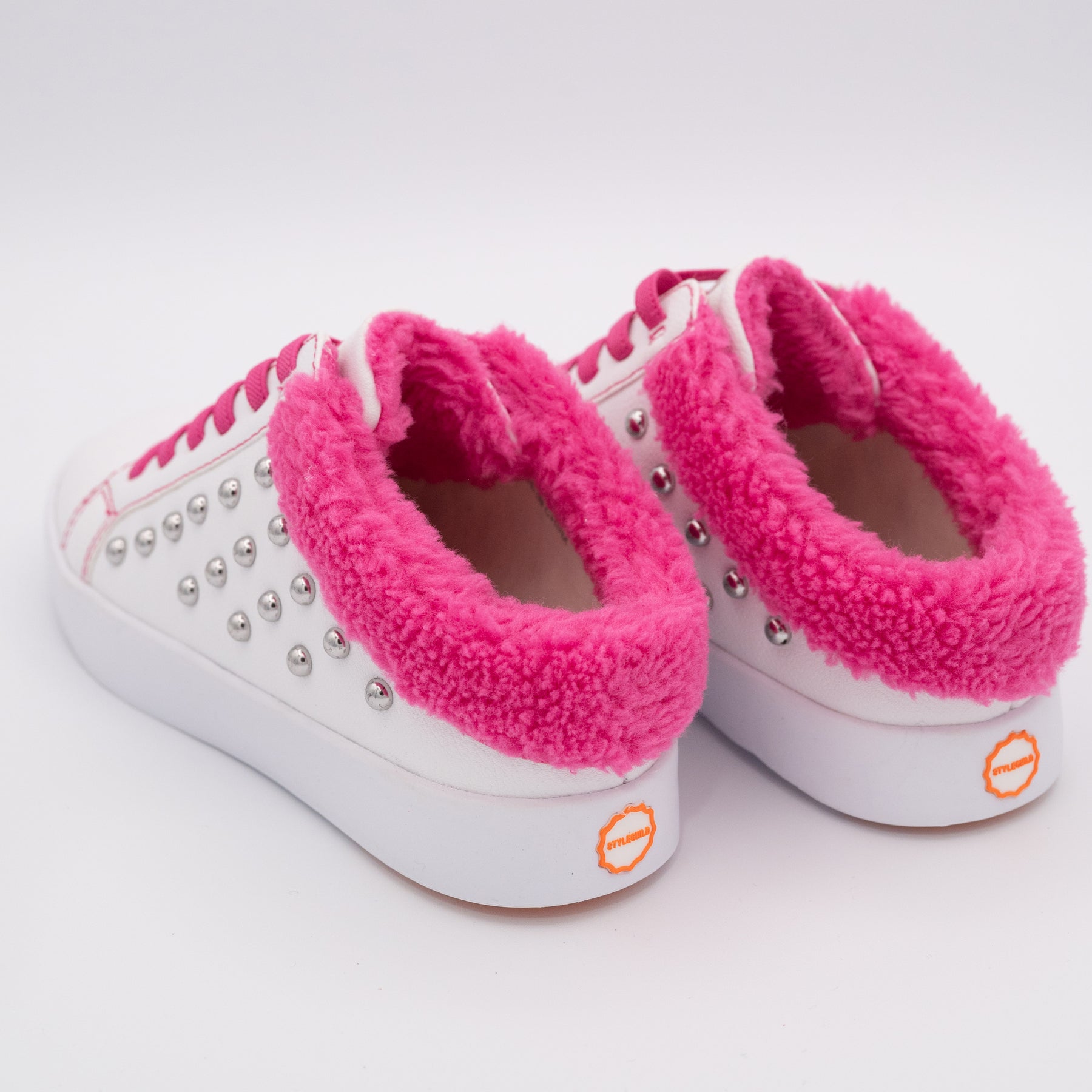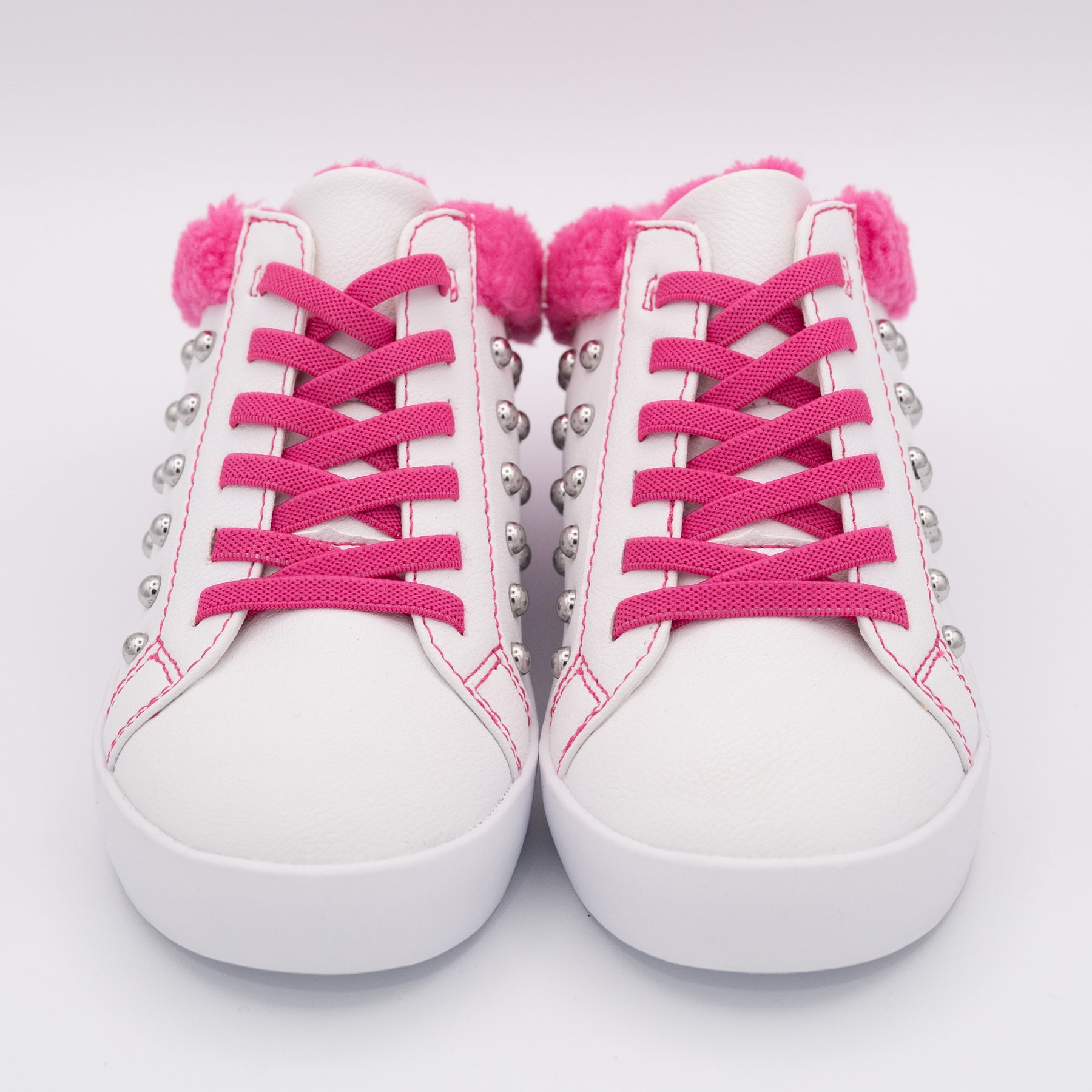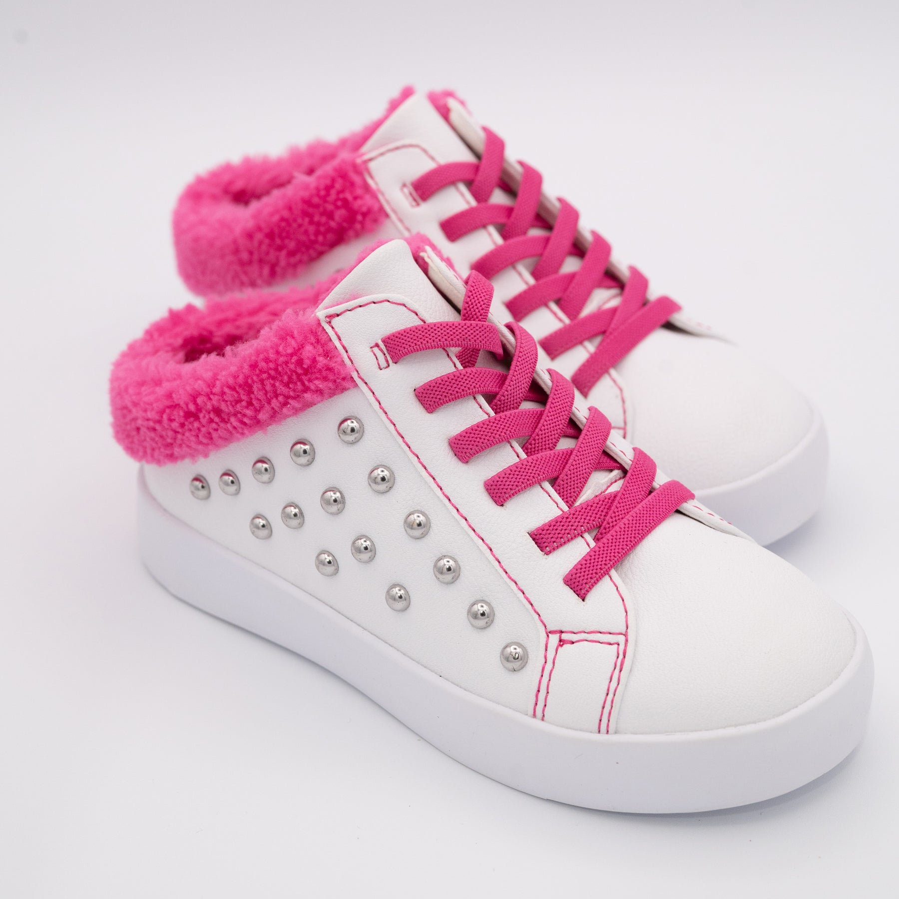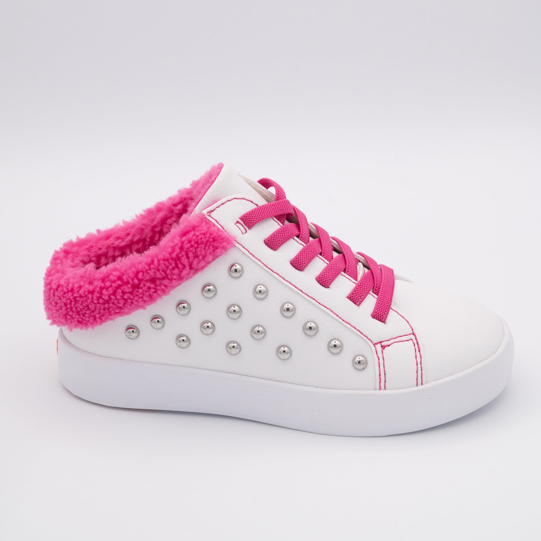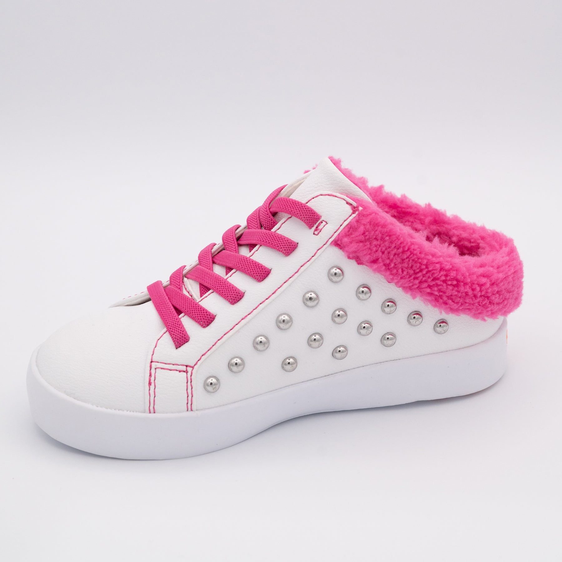 Get ready to fall in love with the Brooke Slip on sneaker! Perfect for both comfort and style, this slip on has silver studs on the side and a cozy Hot Pink fleece trim. Plus, with its breathable design and elastic laces for a secure fit, it's the ideal choice for your casual fashion sneaker needs.